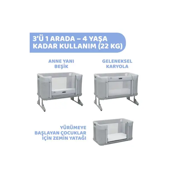 Chicco Next2me Forever Anne Yanı Beşik Ash Grey Cross Collectıon
