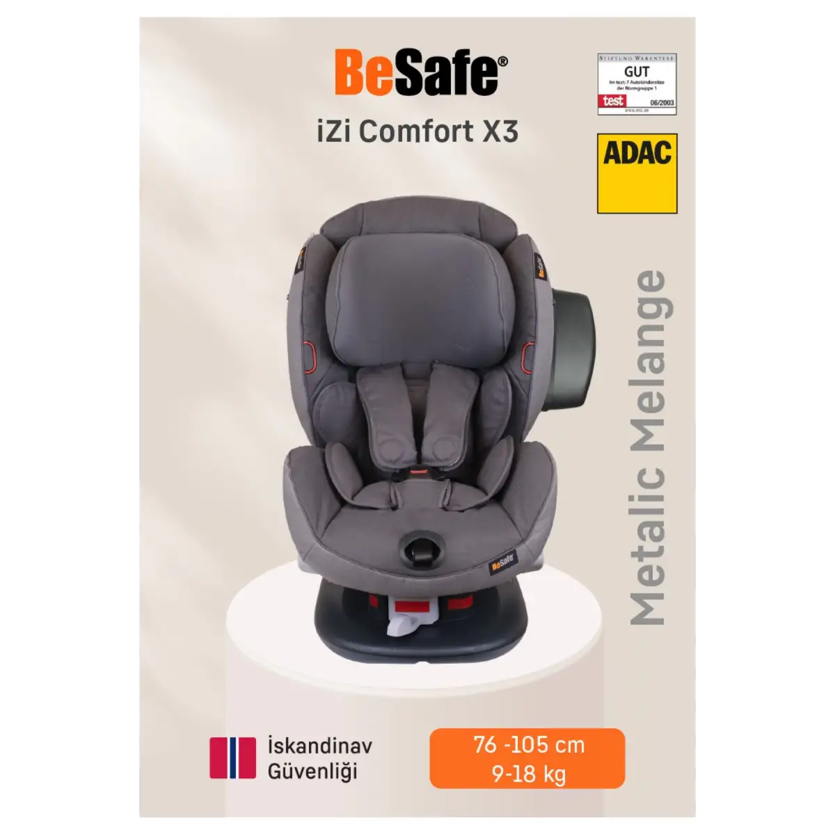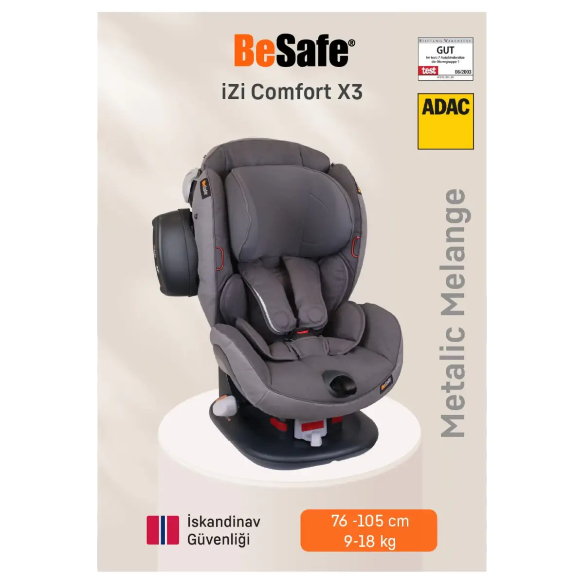 BeSafe iZi Comfort X3 Oto Koltuğu 9-18 Kg Metallic Melange