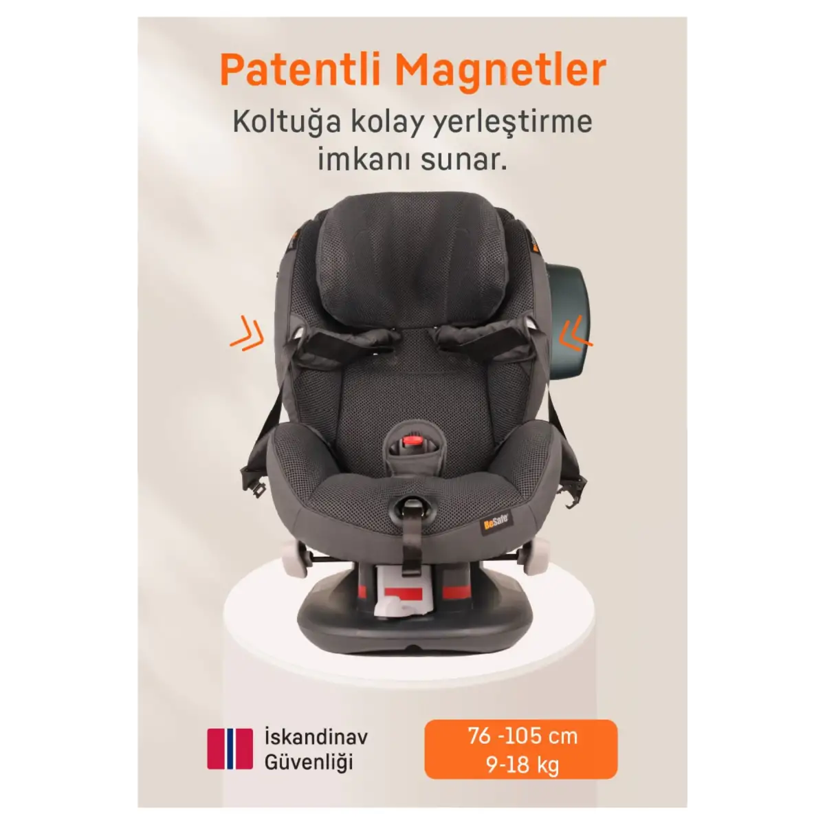 - BeSafe patentli magnetler, koltuğa kolay yerleştirme olanağı sunmaktadır.