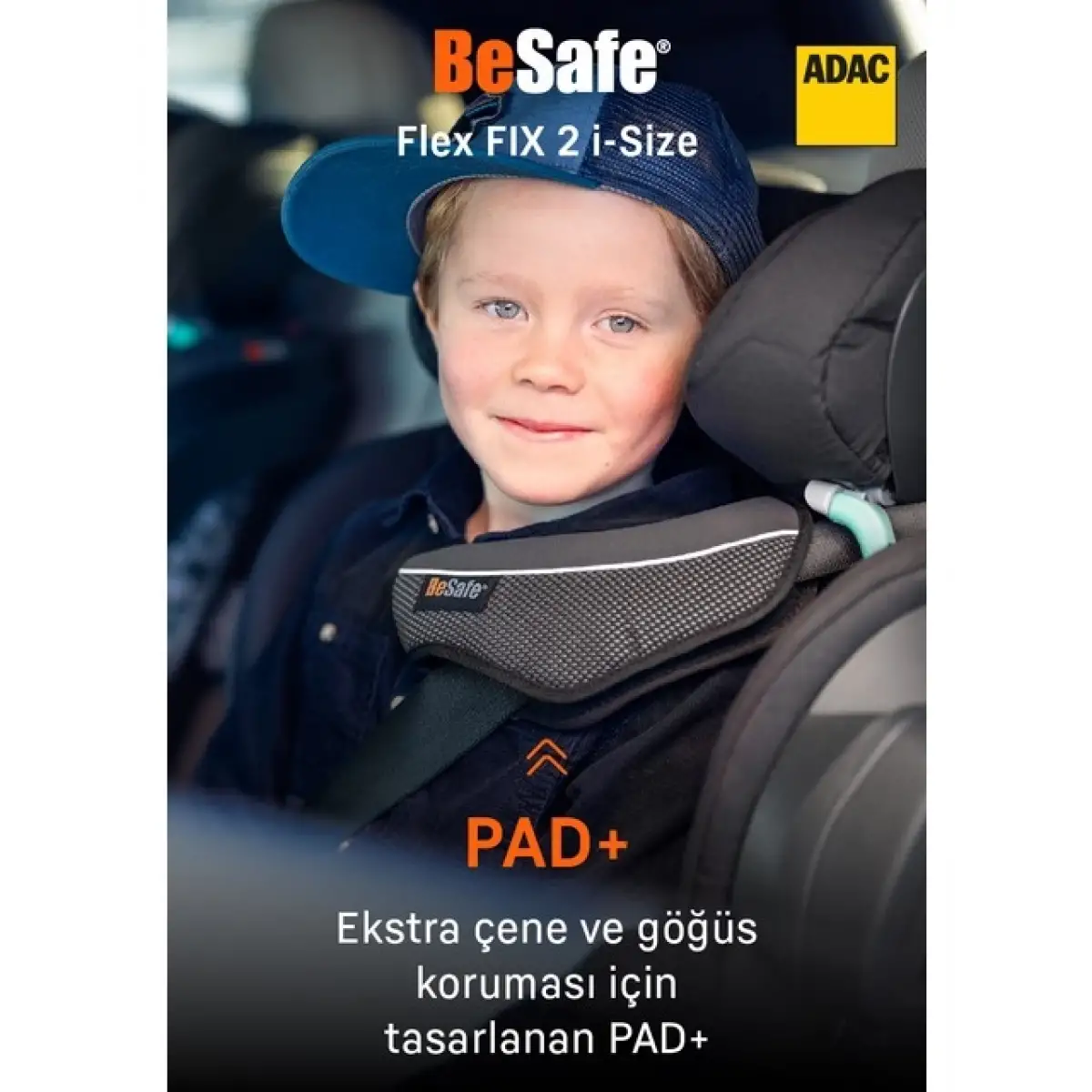 Ekstra çene ve göğüs koruması için tasarlanan PAD+, emniyet kemerinin baskısını yumuşatarak, çocuğunuza daha fazla konfor ve koruma sağlar.