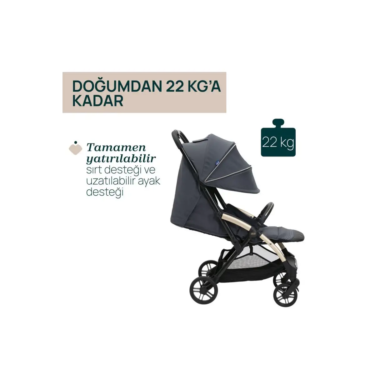 KOMPAKT: Son derece kompakt ve hafif bir ürün (sadece 7.5 kg) olduğu için bebek arabasını tek elle kolayca katlayabilirsiniz.