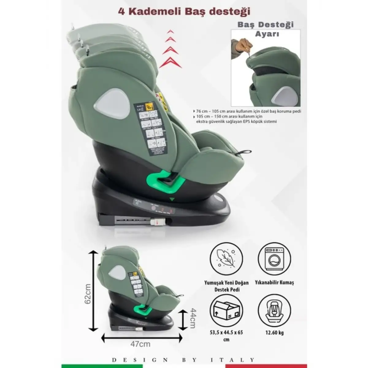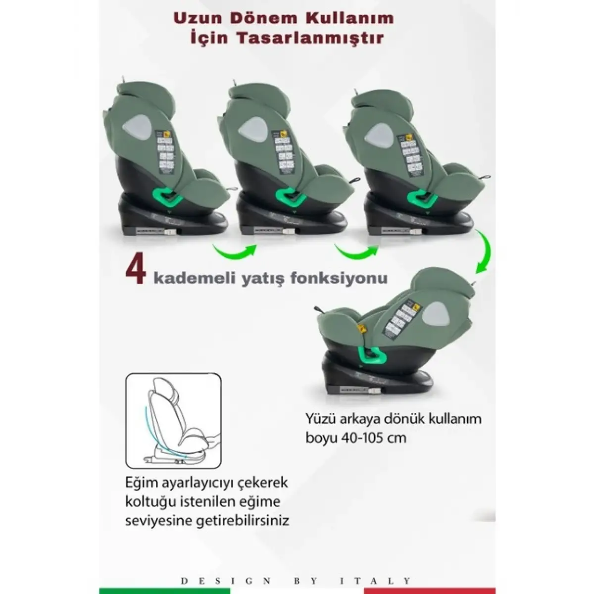 Prego Tronfix 360° Dönebilen Isofixli I-Size Oto Koltuğu 0-36 Kg Yeşil Q9004